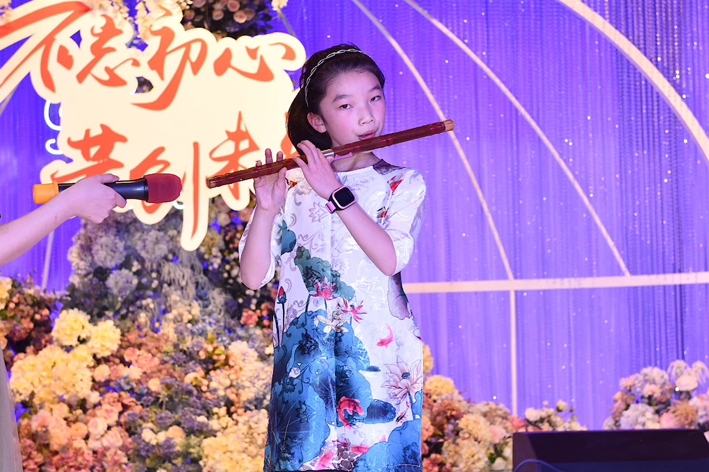 高畅言小朋友又来啦,过了一年,技能又精进不少了,今年她给我们准备一首《女儿情》,那笛声时而高亢激昂,时而欢快有趣,那音节就如潺潺流水般绵绵不绝,如淳淳溪水般清脆欢快,我们已经深深的陶醉在这美妙的笛声之中,久久难以释怀。