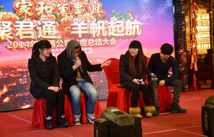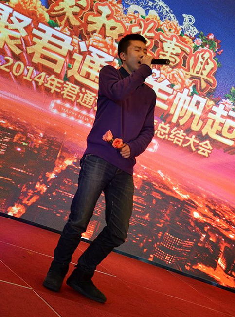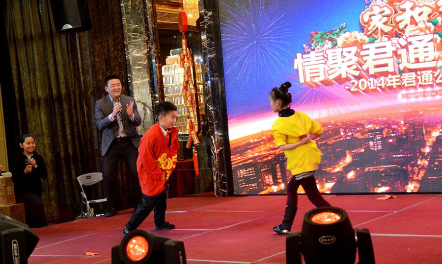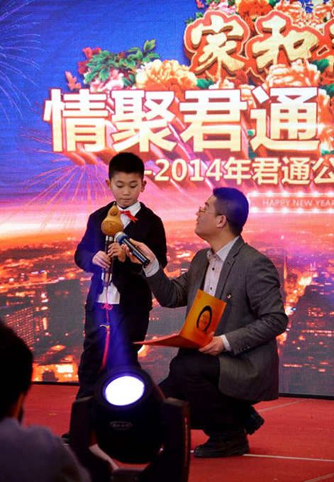 | 2015年2月11日,民间俗称的小年,好日子。 立春后的江南阳光灿烂,温暖如春。 太湖畔的同庆楼百合厅流光溢彩,喜气洋洋。身着节日盛装的青春少女鱼贯而入,留下银玲般的笑声,走过她们身边,仿佛被青春撞了一下腰。 君通春晚在欢快的乐曲声中,在员工的欢呼声中拉开了帷幕。 君通总经理尹可珍女士发表了热情洋溢的新年贺词。2000年10月尹可珍女士创立君通公司,几度风雨几度春秋,君通经过十四年发展成为本地IT行业中实力强的企业。熟识我的博友可能都知道,可珍晚常提到的君子兰,我好的女朋友。很开心参加这个欢乐的盛会,虽没有明星大腕,没有星光灿烂,却是每个君通人的倾情演绎,真情流露,好。 ![]() 君通的春晚现场仿佛是一个欢乐的大家庭,演出以部门家庭为单位,更有许多员工可爱的孩子也表演了许多节目。 市场部的美女妈妈带着双胞胎女儿跳起了欢快的《小苹果》