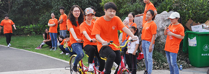 下午我们来到了桃花岛进行了3人2人骑自行车比赛,比慢!我作为有为青年和全能当然所有项目都报名了。首先比的是三人自行车比赛,其中一组已优势拿下,随后开始的2人自行车比赛,随着时间的推移状况越来越激烈,其中三人组的已的优势,当大家以为他们的分数已经的,当大家认为无法超越的时候。尹总对谈经理说了一句话:你去试试,拼一下才知道,你行的。后谈经理以微小的分差赢了取得了。因为他拼搏了。晚上我们进行了晚宴很多老一辈的都上去唱了歌,其中的让我的难忘的还是尹总的一见你笑,开心快乐,康总的红日代表的希望。晚宴结束后自由活动打牌的打牌玩的玩好久没这么开心过了。