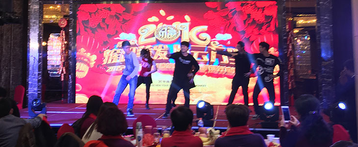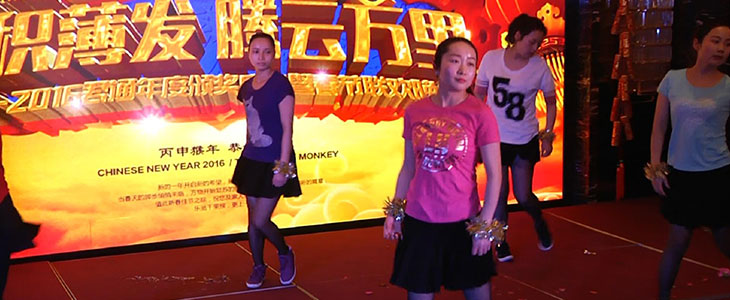 在我们尹总激动人心的开幕词结束后,一帮酷到爆的黑衣女郎和一个红衣帅男登上了舞台,让我给你们介绍介绍,这是我们市场部的赵经理浦斌、刘红、王经理等帅哥美女为我们带来的舞蹈《动感小子》,别看她们大年纪的有50多岁、小的也有30多岁,在我们君通都已经做了10年以上、王经理甚至已经做了15年、都是我们君通元老级别的老员工了,可那婀娜的身姿、动感的舞姿像18岁的少女般风采依旧、越来越青春靓丽、活力四射: