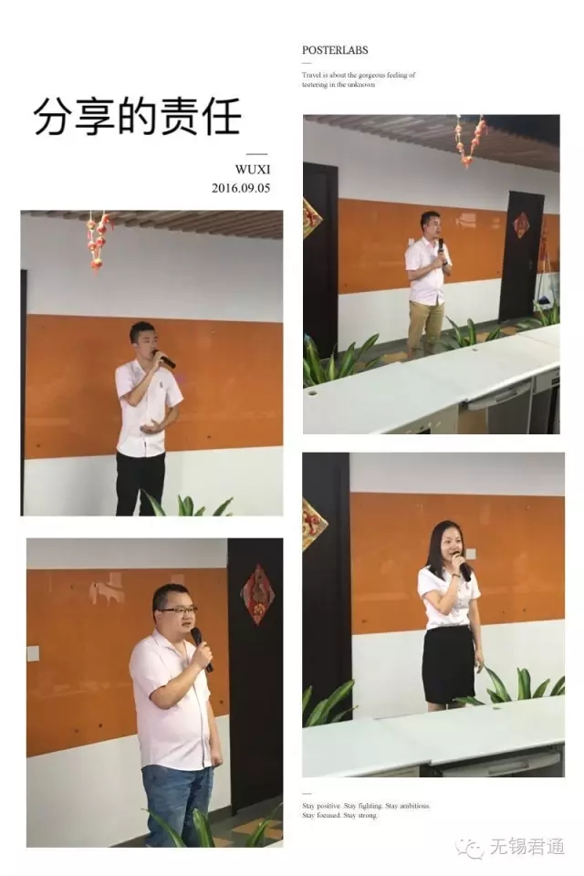 君通的企业文化中有两个核心的理念:“客户:以客户为尊,以诚信为本,帮助客户成长”“关心员工成长:努力提高员工的生存质量,使大家有种幸福感和成感”。这也是大家长尹总常挂在心头的理想。她总像母亲一样为她的“孩子们”操碎了心,常念叨自己有一份责任,要让君通的员工得到成长和幸福,像那个时常响起的口号:快乐工作、幸福生活。岁月仿佛不经意间悄悄的溜走了,恍惚之间,公司成立至今也已经十六个年头。现如今,在这个大家庭中有经验丰富的前辈老兵,正当青壮的中流砥柱,朝气蓬勃的青年才俊。分享客户服务的心得,分享客户反馈的信任,分享员工成长的历程,分享员工幸福的瞬间,这些已然成为一种责任。传承的责任!
