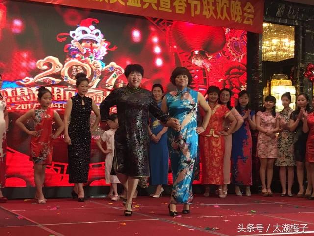 (君通旗袍秀,IT精英美女在董事长的带领上穿着五彩缤纷的旗袍,婀娜多姿地走在T台上,展示了时代新女性的风采)