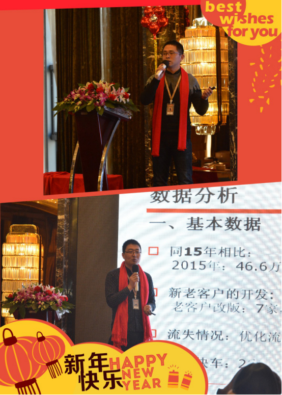 上午半天是管理层2016年的总结和2017年的计划报告,由我们尹总和康总开篇领讲。满怀谦逊和感恩,尹总从互联网大事件到君通大事件娓娓道来,从大格局大方向上做了2017年管理方面的精细规划。而康总,我们外贸快车产品的开拓者和引领者,在他的带领下整个团队在为期50天的时间里外贸快车销售额突破160万,在杭州年度盛典上获得了“年度新锐奖”,康总的报告中不仅一针见血的指出了目前公司存在的管理方面的问题,更是对2017年的业绩计划做了细致明确的分配,字里行间中凸显着康总的果断和敏锐的洞察力,给君通人带来满腔的斗志和必胜的信念,鞭策我们在2017做的更好,向外贸快车全国全三甲冲刺!