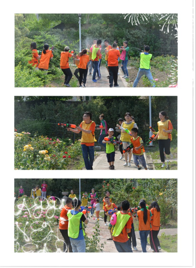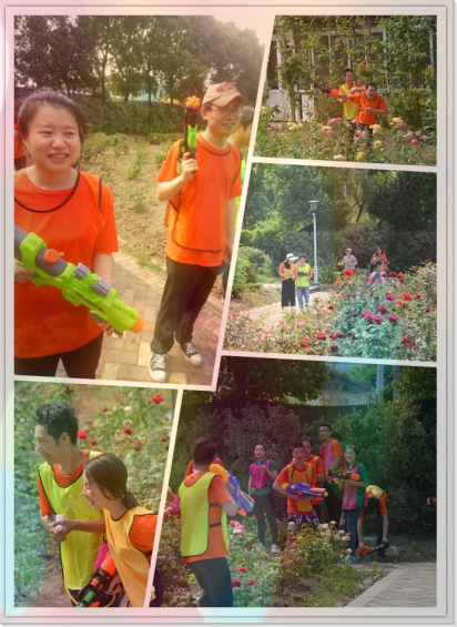 吃饱喝足之后,还有更好玩的在等待着大家哦。尹总作为我们的首席指挥官,带领大伙一起在花海中开始水枪大战,在花园中展开了一场脑力与体力并存的精彩角逐;有我们的到来令整个山庄沸腾起来。有人认真享受活动的乐趣,也有人专门为她们拍下精彩瞬间,例如我、海燕和王经理是专门的摄影师,为大家留下美好回忆。