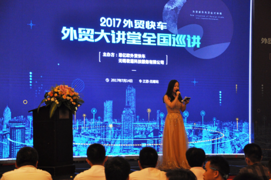 2017.7.14下午,烈日当空,炎炎夏日,无锡滨湖万达喜来登3楼400多位慕名而来的外贸企业从业者、外贸高端精英人才因外贸结缘,汇聚一堂,都为了如何开启外贸之路,接下来如何更好地做好外贸? 为帮助无锡中小企业由“内销—外销”的成功转型升级,无锡君通联合杭州思亿欧组建了专门的外贸网络营销理论和实践专家团队,推出了纯公益性质的无锡杯“jac外贸大讲堂”,旨在为广大外贸企业带来新的外贸营销理念和实践知识,也针对外贸实操过程中的普遍问题提供解决方案,给广大外贸企业带来福音。本次会议由外贸快车无锡服务中心——无锡君通科技服务有限公司承办,活动一经确认举办,吸引了众多外贸企业家和外贸实操人员的踊跃报名,据统计,网上报名人数近达500余人,可见无锡的中小企业有无穷大的提升潜力与进步空间!