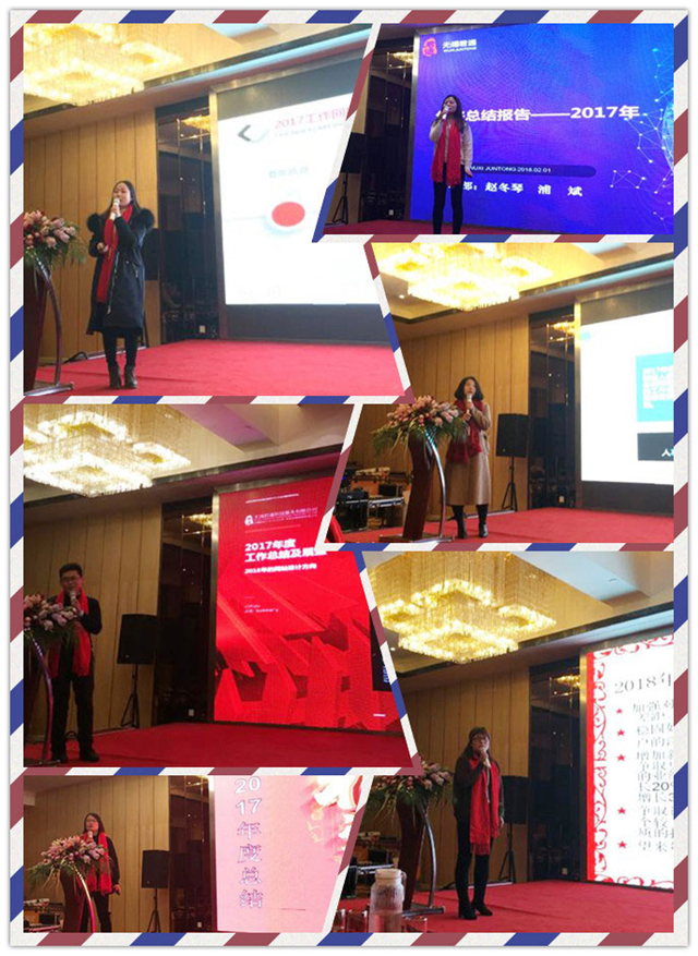 接下来是我们公司的瑰宝---销售部门的报告,大区经理赵经理,张经理,宋经理分别总结了2017年的业绩和2018年的目标,正如赵经理所说:我们是sales,应该拿出该有的态度出来,轻易能达到的不叫目标,要跳一跳才能够到的才叫目标!为这样的态度与勇气鼓掌,期待2018你们往更高的台阶跨!