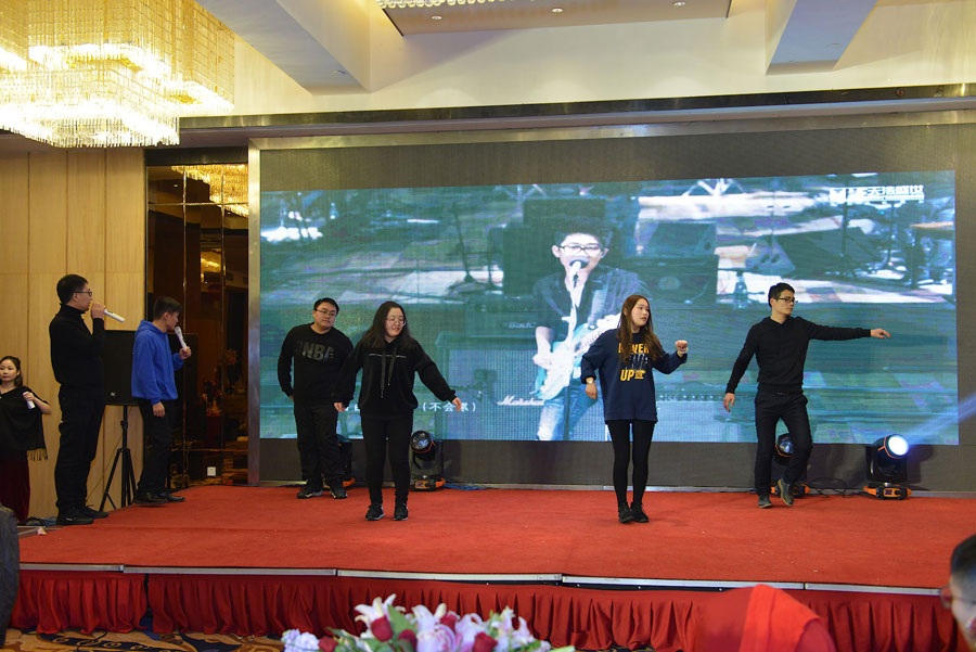 此次春晚内容别出心裁,表演多元且丰富,国际化,这不我们君通的歌王康总,邓总,谈经理,小歌后妞妞,梁山小分队周文耀等都毫不吝啬的一展歌喉,台下的观众为之疯狂,大家都争相上台展现自己的才艺,多次视频的展现让君通人耳目一新,震撼,感动,开心欢乐之余又能感受到很多的内心的澎湃!这是君通人,多才多艺,德艺双馨。虽然仅仅只排练两天不到的时间,能展现这样一场精彩纷呈的春晚,不必低调,必须骄傲!