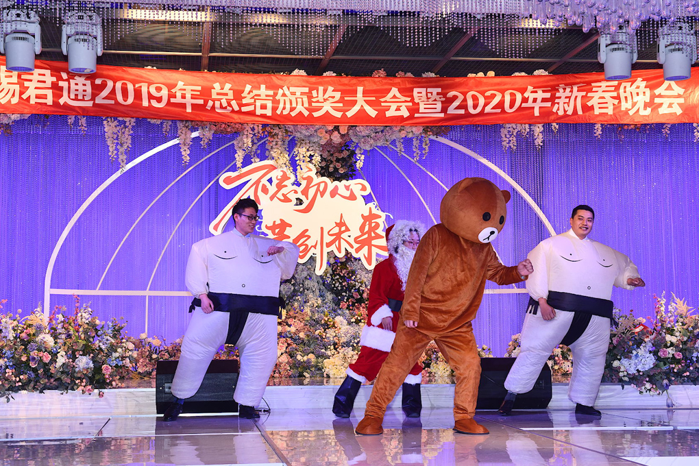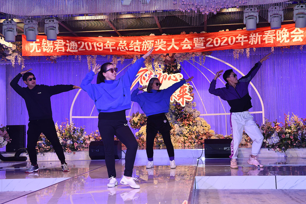 颁奖典礼结束后是大家期待已久的君通春晚,随着如雷惯耳的掌声,4位主持人闪亮登场!每年的节目都让大家捧腹大笑,不知道今年君通的家人们又给大家准备了什么精彩而又难忘的节目呢?