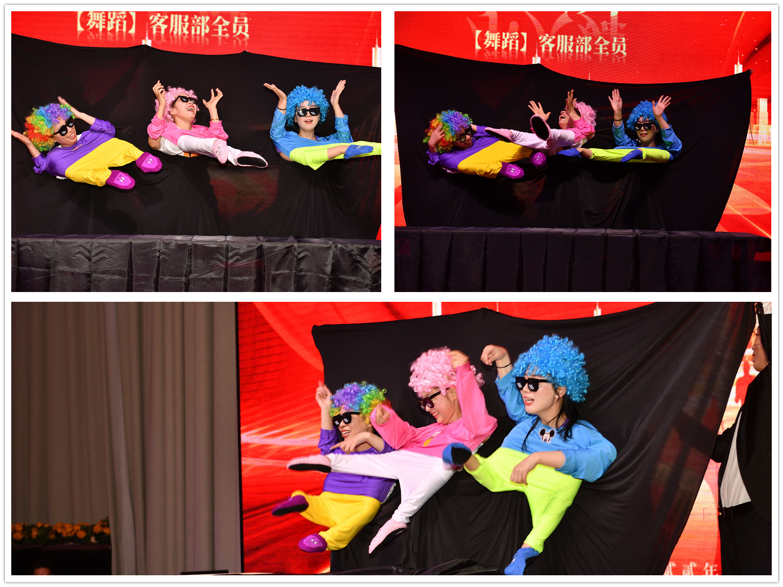 每次我们客服部的节目都是全员登场全员参与,算是参与度最高的一个部门了,接下来我们客服部的全员美女们又将为我们带来一个稍微有点点小的节目,舞蹈串烧《小人舞》,你看C位的妮妮笑得人仰马翻的,台下掌声尖叫不断: