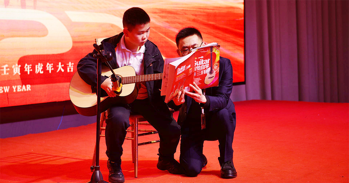 热舞已罢,精彩继续,君通下一代们都初长成,吉他王子顾瀚中带着吉他回归君通春晚舞台,为我们带来《送别+友谊地久天长》,霸气帅起来: